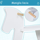Easycomfort Cavallo a Dondolo Bambini da 1-3 Anni in Legno con Maniglie e Poggiapiedi, 68x26.5x48 cm, Bianco