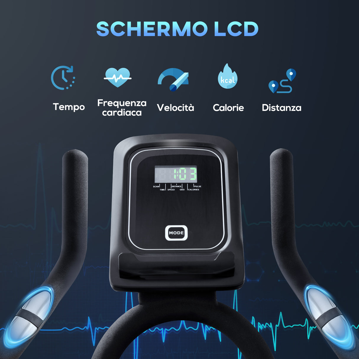 - Display LCD per tenere traccia di tempo, distanza, velocità, frequenza cardiaca e calorie