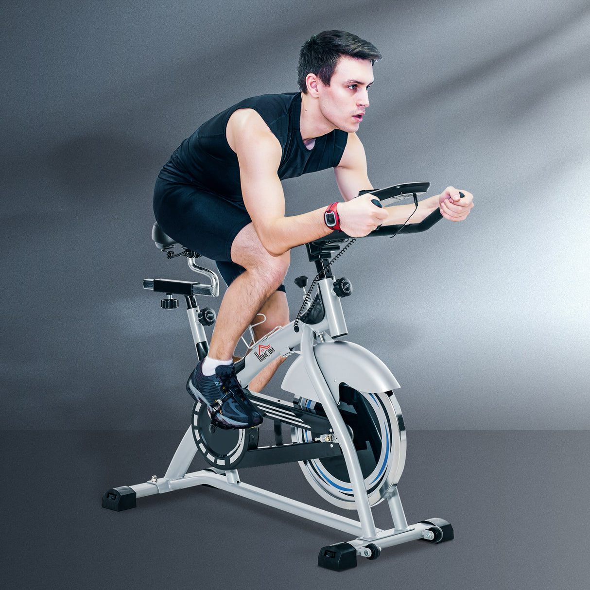 Easycomfort Cyclette Professionale da Camera con Monitor LCD e Volano 15kg, Sellino e Manubrio Regolabili, 124x50x105-111cm, Argento Nero