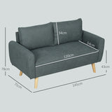 EasyComfort Divano 2 Posti Salvaspazio con Cuscini per Schienale, in Tessuto Effetto Velluto e Legno, 145x75x78 cm, Grigio