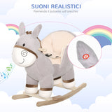 EasyComfort Dondolo Giocattolo a Forma di Asino per Bambini 18-36 in Legno di Pioppo e Peluche Grigio, Suoni Realistici