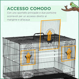 EasyComfort Gabbia per Uccelli con 2 Posatoi e 3 Ingressi in Filo Metallico e Plastica, 60x41x41 cm, Nero