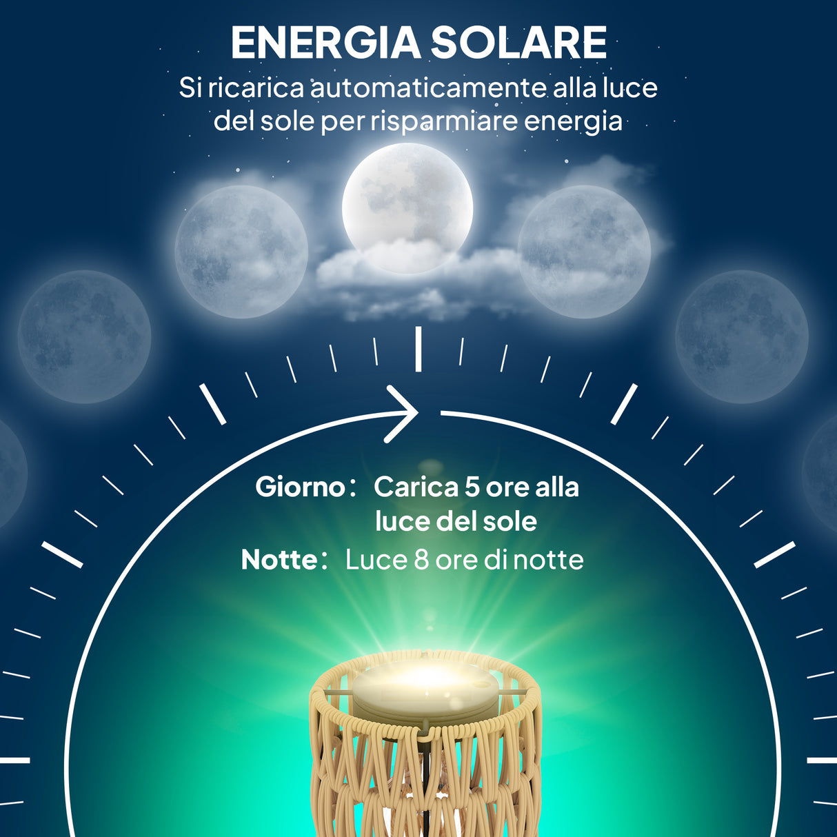 • La lampada solare si accende/spegne automaticamente al tramonto e all'alba