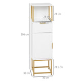 Easycomfort Mobile Colonna Bagno con Cassetto, Armadietto e Ripiano in Legno e Metallo, 30x30x105cm, Bianco