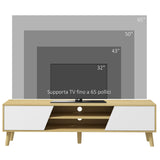 Easycomfort Mobile Porta TV fino 65" con Armadietti e Ripiani Aperti, 150x30x42cm, Bianco e Legno