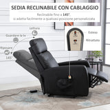 Easycomfort Poltrona Elettrica Alzapersona 45°, Poltrona Relax Elettrica Reclinabile a 145° con Telecomando e Poggiapiedi, in Pelle PU Nero, 67x95x105 cm