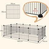 EasyComfort Recinto per Animali Modulabile con 12 Pannelli 35x35 cm e Bordi Arrotondati, in Metallo e ABS, 140x70x35 cm, Nero