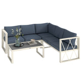 EasyComfort Salotto da Giardino Angolare con Poltrona Reclinabile, 2 Divanetti con Cuscini e Tavolino, Grigio
