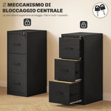 EasyComfort Schedario Portadocumenti Minimal a 3 Cassetti con Barra Regolabile, in Acciaio, 36.5x46.2x99 cm, Nero