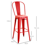 EasyComfort Set 2 Sgabelli da Cucina di Design con Schienale Rimovibile e Poggiapiedi, in Metallo, 44x49x116 cm, Rosso