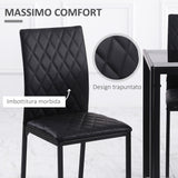 EasyComfort Set 4 Sedie da Pranzo in Finta Pelle con Cuciture a Rombi e Gambe in Metallo, Nero