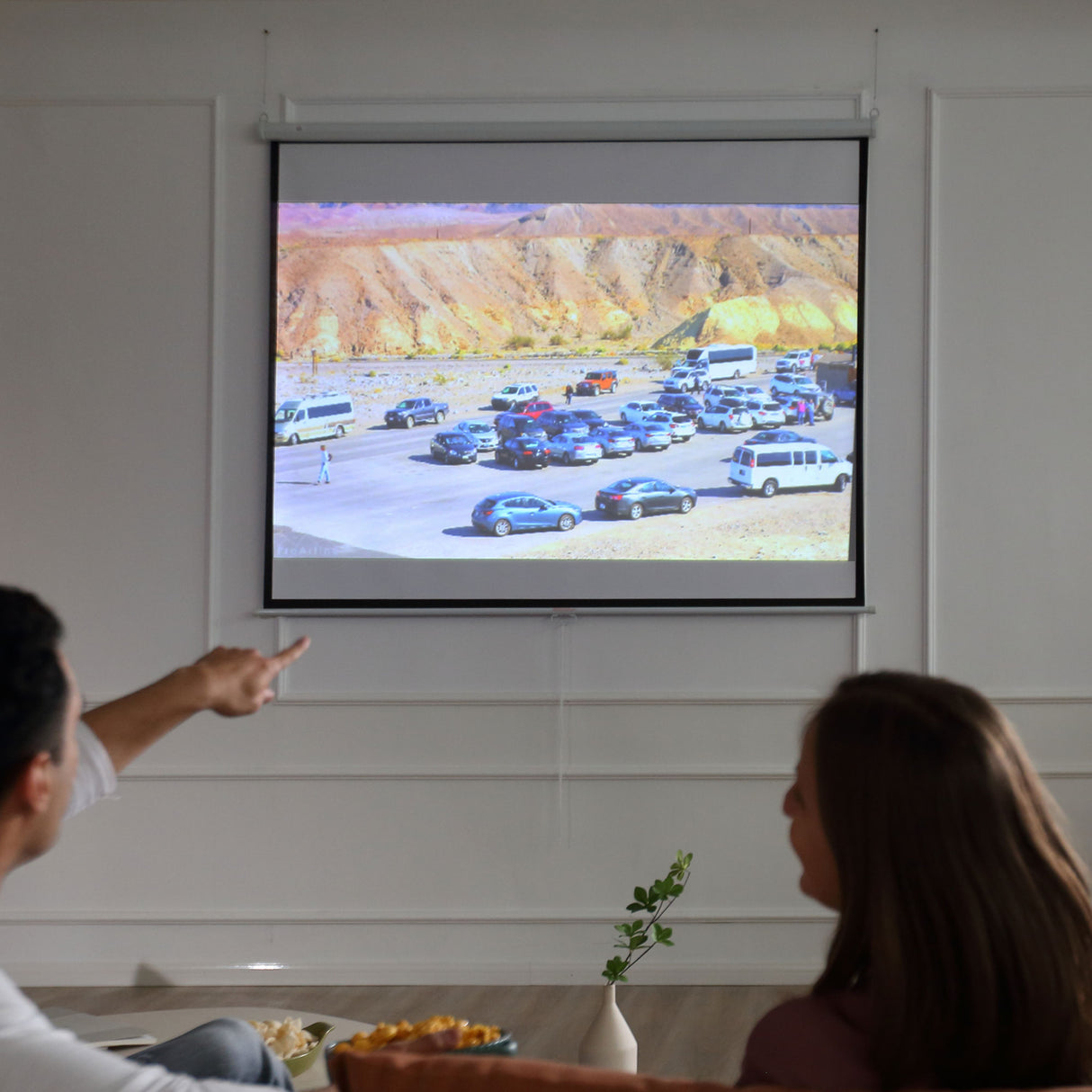 Easycomfort Telo per Proiettore da 100" Formato 16:9/4:3 ad Altezza Regolabile, 210x8.6x7 cm, Bianco e Nero
