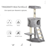 Easycomfort Tiragraffi Multilivello Palestra per Gatti con Cuccia, Scala e Corde in Sisal, Grigio Chiaro, 50x40x120cm