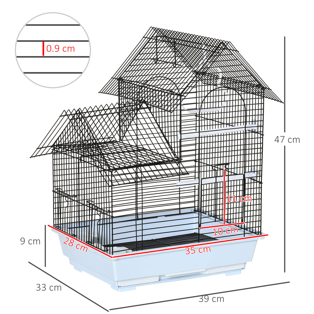 Easycomfort Gabbia per Uccelli in Metallo con Maniglia, Vassoio Estraibile, Pioli e Altalena, 39x33x47cm, Bianco