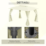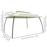 Easycomfort Gazebo da Giardino 4x3m con Doppio Tettuccio, Pareti in Poliestere e Struttura in Acciaio, Beige