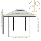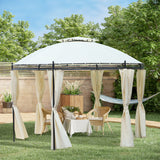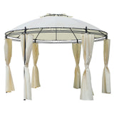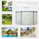 Easycomfort Gazebo da Giardino Rotondo con Doppio Tettuccio, Cinghie e Tende, Ø3.5x2.8m, Bianco