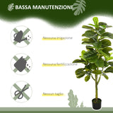 Easycomfort Pianta Artificiale di Ficus da 150 cm a 75 Foglie e 4 Rami con Vaso Ø15x12.5 cm, per Interni ed Esterni, Verde