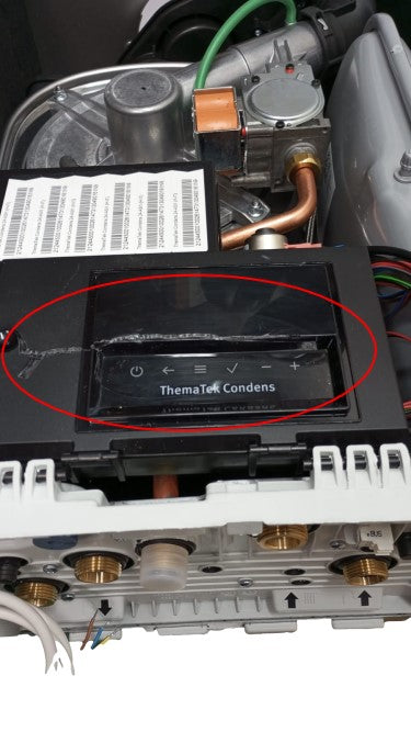 - Il nuovo design di Thematek Condens propone un’innovativa interfaccia touch screen di estrema semplicità con 6 tasti, display con sfondo nero e 2 digit in bianco ad accensione intermittente, l’indicazione dello stato della caldaia è definito dall’accensione ad intermittenza dell’icona selezionata.