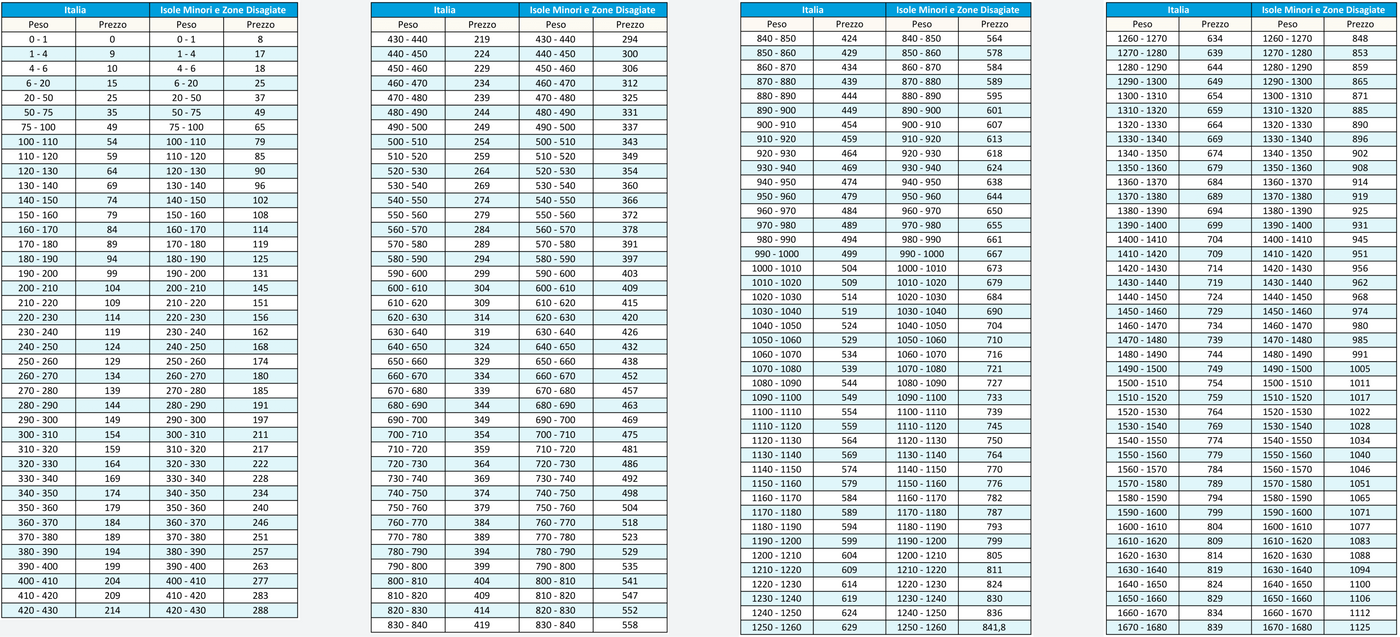 Online-Bestellungen werden in ganz Italien ausgeliefert, mit Ausnahme von Livigno, Campione d'Italia, der Vatikanstadt und der Republik San Marino.